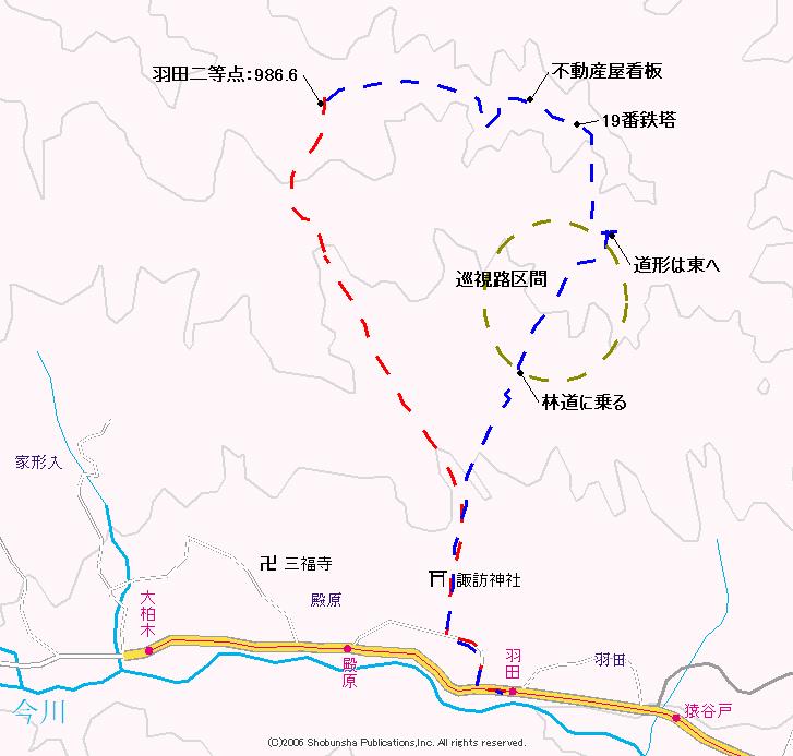 東吾妻町の羽田二等点を目指す。旧大柏木村地内にあり、川原湯温泉側への大柏木トンネルができたので、大柏木の名を見知っている人は居るだろう。国道406号から少し逸れる場所で、トンネルができる以前はどん詰まりな山村で、トンネルが開通し大きく様子が変わったろう場所であった。羽田二等点の「点の記」は、明治のオリジナル品が見られ、かなり味わいがある表記になっていた。宿や食料や飲料水の入手詳細まで書かれているものだった。これを見て登らずにおれなくなった。山村なので、土地が在っても駐車場所を迷うが、運よく羽田地区に案内板が立てられた余地があり、そこを基点とすることにした。