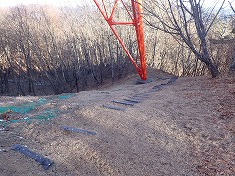 | 925mの肩は、境界標柱がこの通り。 | 930mの肩に不動産屋の看板がある。 | C19番鉄塔 | C北へ進む巡視路。南に下る。 |