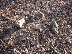 | B西側の防障石のみ小ぶり | B二等点。凍結しておりここまでしか掘れなかった。 | Bヤキソバパンと | B北側の展望。吾嬬山などが見えているのだろう。 |