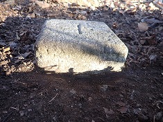790mからの尾根は急峻だが、下草の無い斜面が続き見通しはいい。925m付近にはクマの糞が見られた。シカの糞も多い場所で、2頭の小鹿が撥ねて行く姿も見られた。北に進んでゆくと西寄りに高みがあり進んで行きたくなるが、埋設してあるのは東側の肩地形で、乗り上げたら東に進んでゆく。進む先に防障石を伴った標石が見えていた。