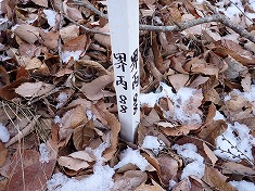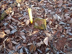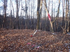 | C黄色い杭の横にあるのは境界標柱。 | Cここは金属標。赤い杭が沿う。 | Cまだ新しい標識が縛られていた。 | C北から |