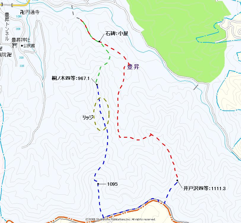 前週の千の入四等点を検討する中で、同じエリア内で目に入っていたのが西側の井戸沢四等点と桐ノ木四等点。南は佐久市との市町界尾根があり、その北斜面の里山な場所。地形図とストリートビューを使いコースを検討すると、2点のある尾根に挟まれる谷に林道があり、林道名は「林道木の久保線」と判った。豊昇地区にはあまり駐車余地がなく適当な場所が見出せなかった。この木の久保線沿いに期待して出向いてみる。