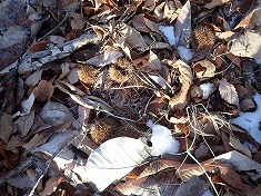 | 1030m付近。尾根上が大ぶりな露岩が多い。 | 1040m付近にクマの糞 | 1070m付近 | C井戸沢四等点ポイント |